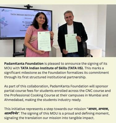 Collaboration with a Purpose of Change - First institutional partnership in FY 2025-26 with Tata Indian Institute of Skills ('TATA IIS')